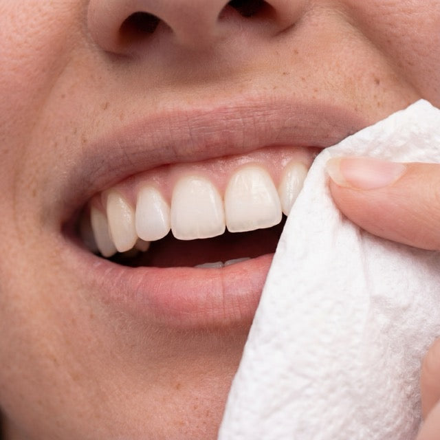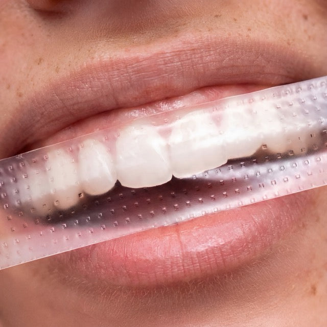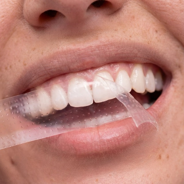Our whitening strips use a peroxide-based formula to break down surface stains caused by coffee, tea, and everyday foods.